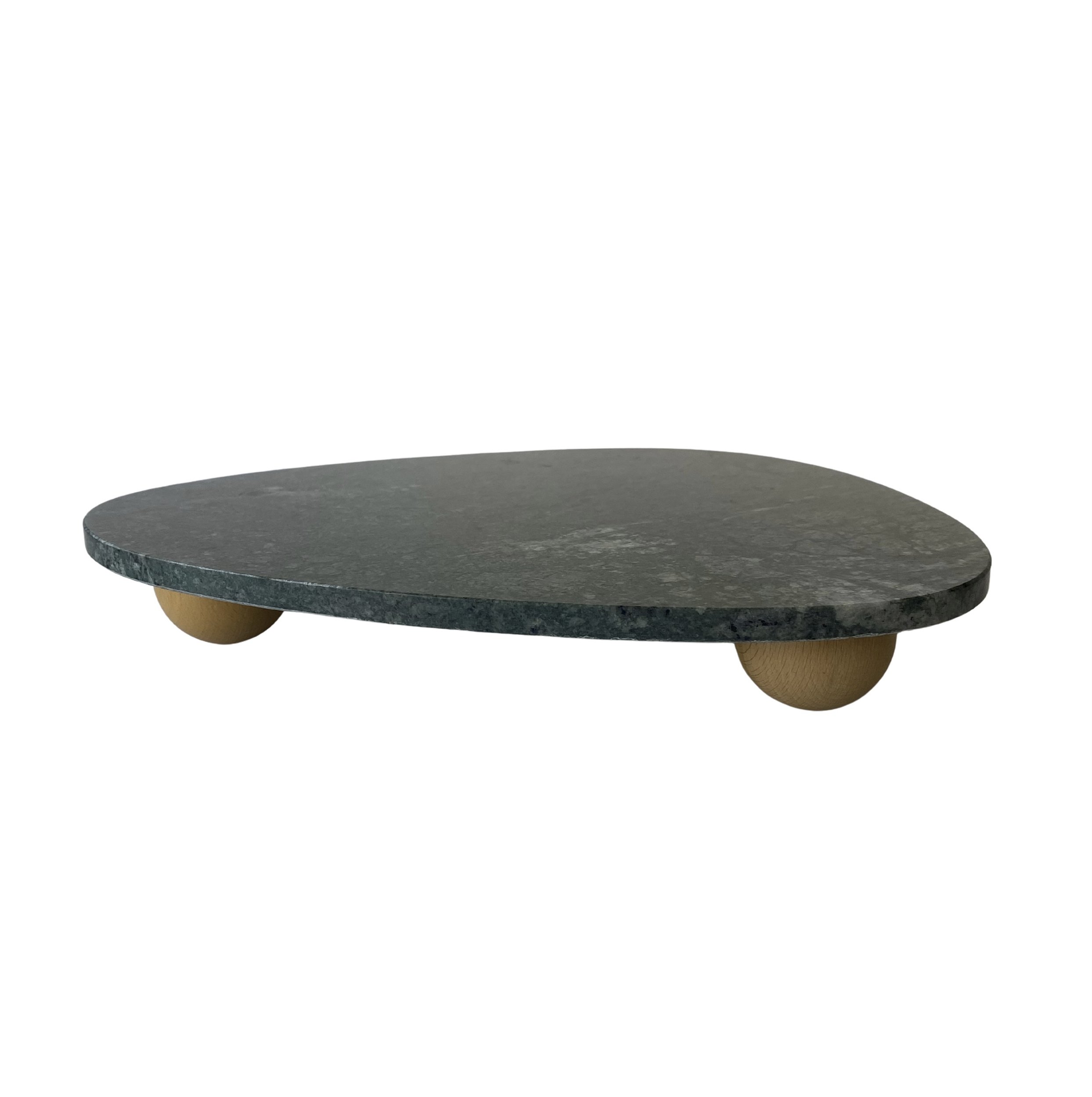 Bandeja decorativa de mármore verde com 3 pés bolas de madeira
